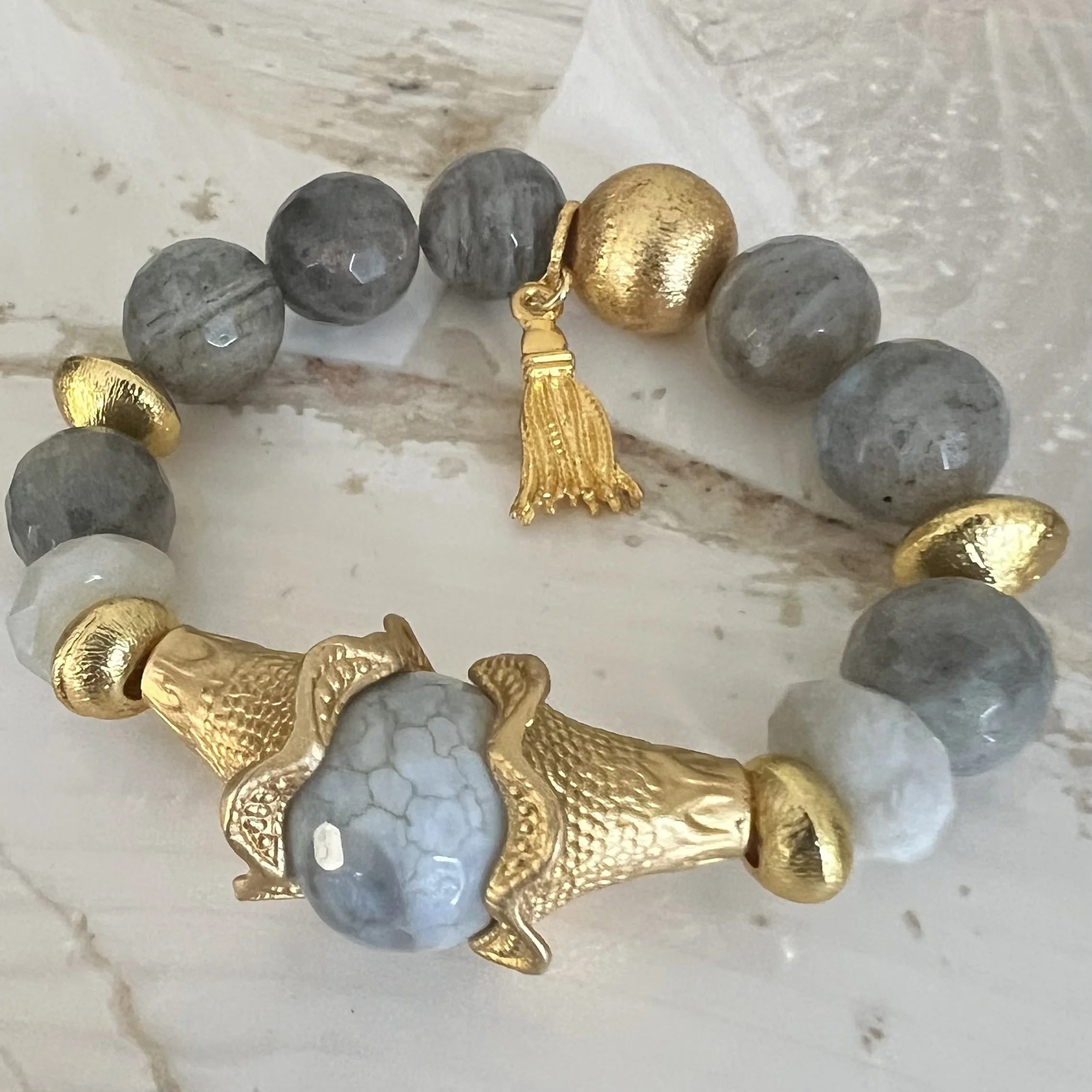 An AMAZING [ 3 STACK ] Of Semi Precious Multi Color OCEAN JASPER Stones And High Polished Gold Non Tarnishing Silver Beads.