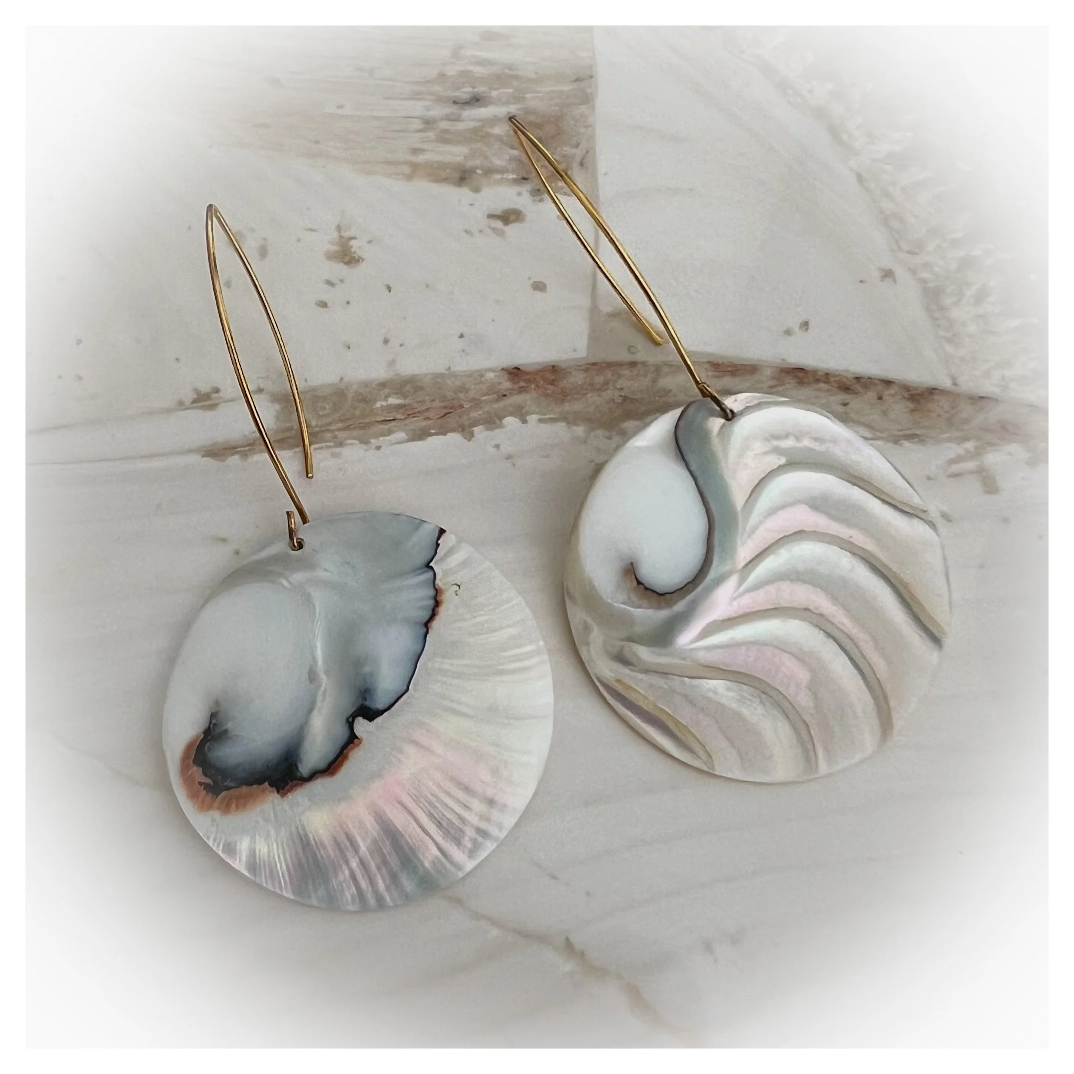 The polished Nautilus core provides a luminous glow that shifts with the light, making them the perfect lightweight statement earrings for your next coastal getaway or everyday wear