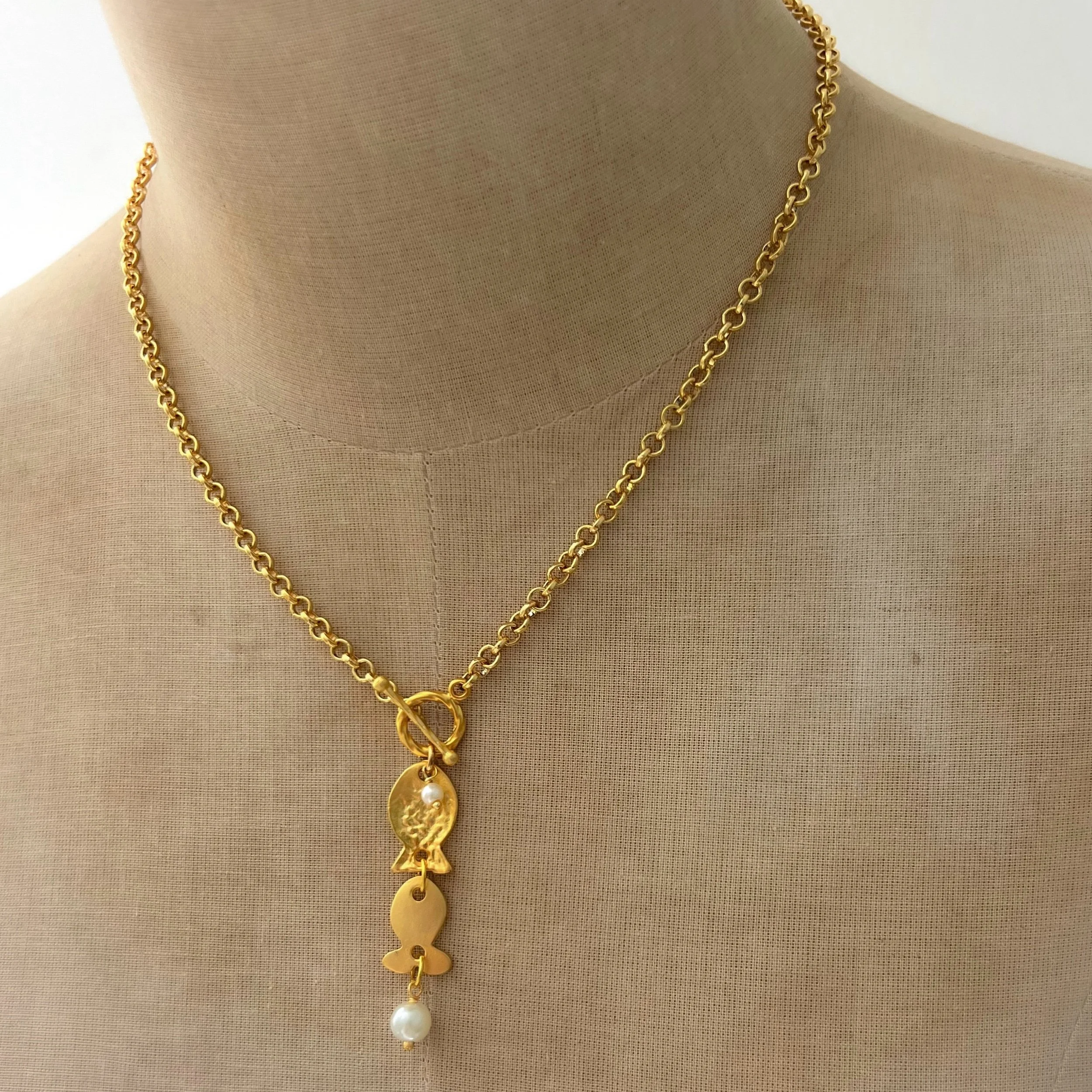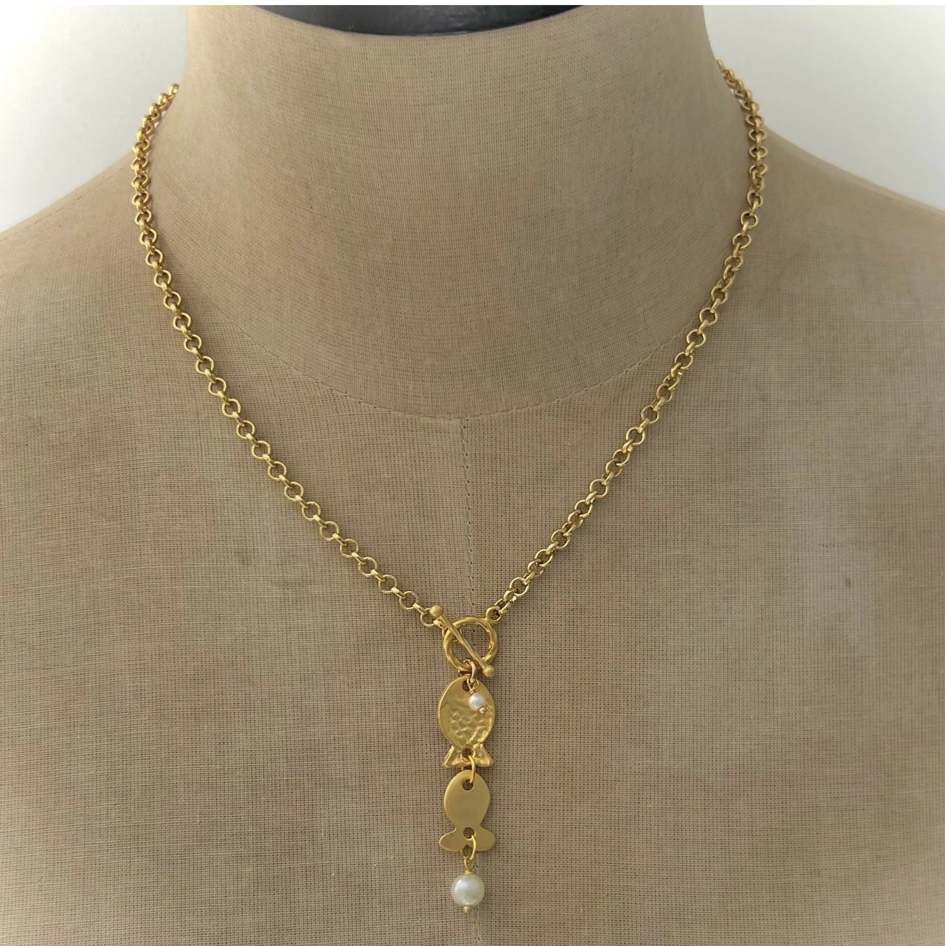 For the admirer of the sea, this luxurious necklace makes a golden statement. It features a stunning 1.5” lobster pendant, meticulously crafted with a 24k gold overlay. This luxurious focal is perfectly balanced by a 18” intricate gold chain, which closes easily with a convenient magnetic clasp.
